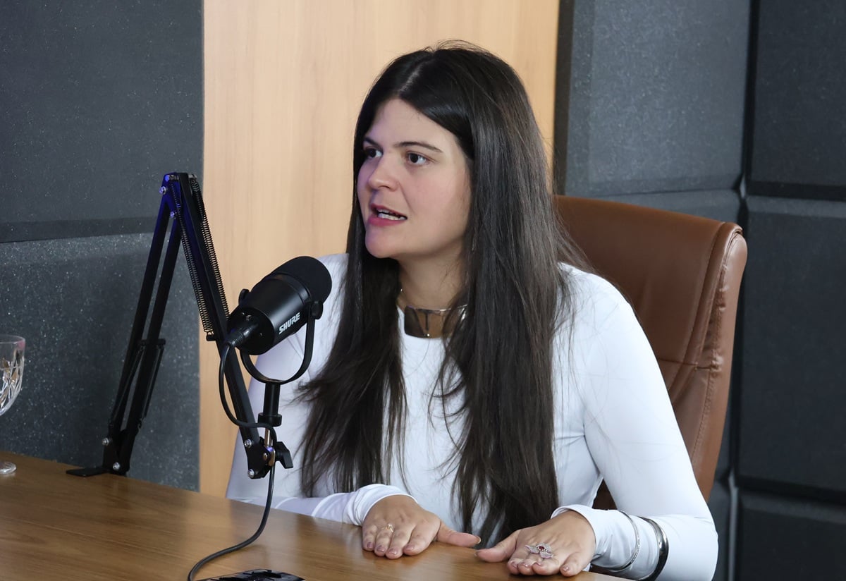 Aava Santiago, durante participação no Domingos Conversa, apresentado pelo colunista de política do Mais Goiás, Domingos Ketelbey (Foto: Leoiran)