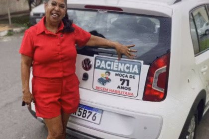 Professora aposentada de 71 anos tira CNH e coloca placa em carro “Paciência! Moça recém-habilitada”