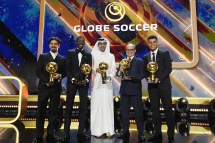 PREMIAÇÃO Além do prêmio coletivo, o PSG faturou outros seis prêmios individuais no Globe Soccer Awards Publicado em: 28/12/2025 18:20 Representantes do PSG no Globe Soccer Awards. Foto: Divulgação &#...