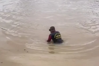 Investigação A vítima nadou cerca de 30 metros e caiu em uma erosão submersa de aproximadamente seis metros Publicado em: 09/12/2025 7:58 Buscas foram prejudicadas pela água turva (Divulgação CBMGO) 1...