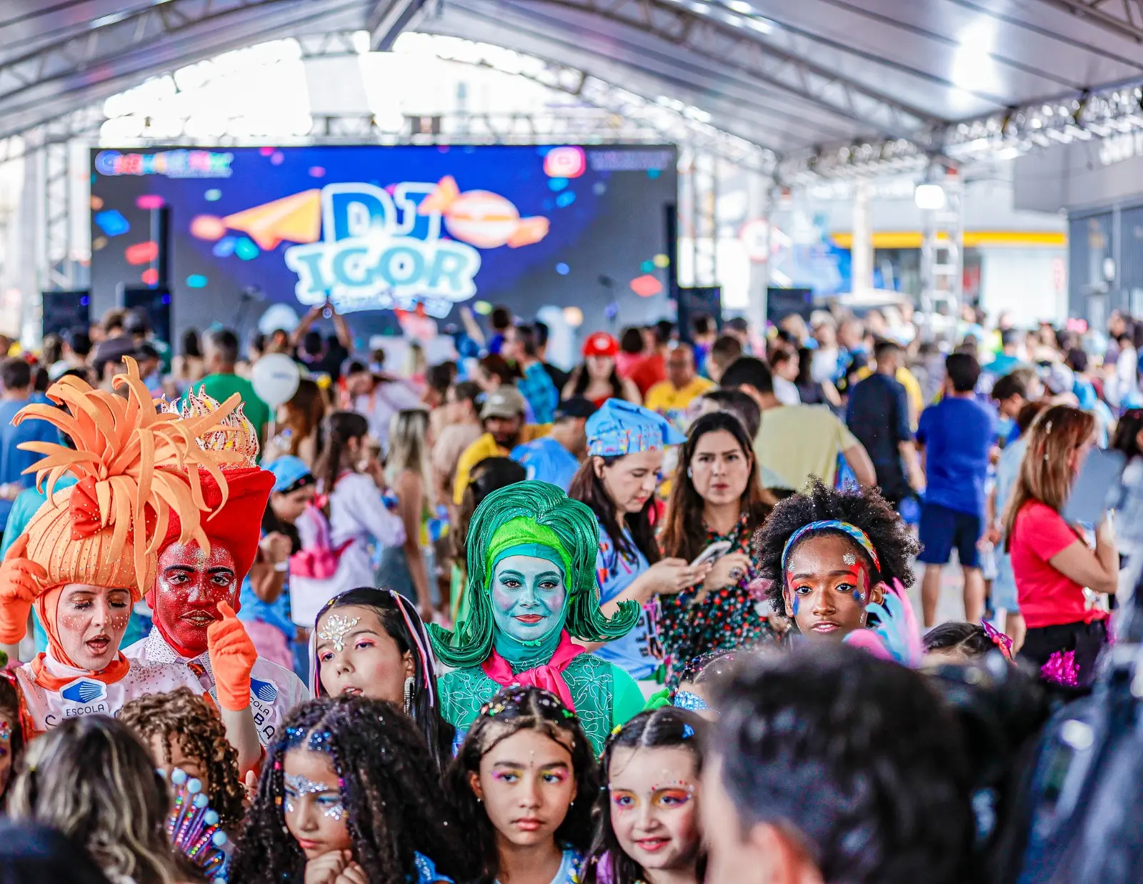 A programação inclui show com Gabi Cruz e Banda, apresentação da Charanga Mirim, DJ, atividades infantis e a participação de personagens fantasiados. O evento ocorre em formato de avenida aberta, com estrutura de banheiros e esquema de segurança.