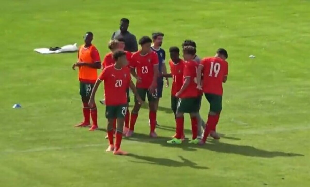 Jogadores de Portual comemoram gol de Cristiano Ronaldo Jr. Foto: Divulgação – Twitter