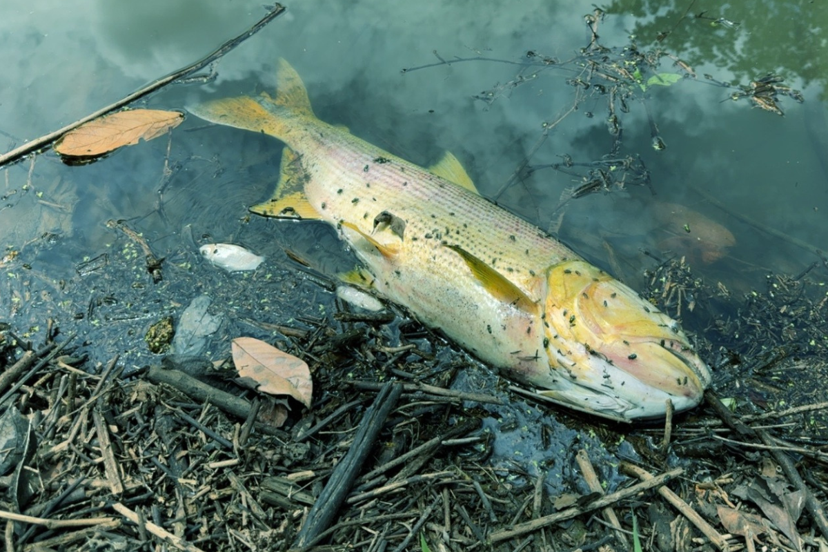 Durante a vistoria, os técnicos utilizaram uma sonda multiparâmetros e coletaram amostras de água para análise laboratorial completa. As coletas foram realizadas a montante e a jusante, ou seja, antes e depois do ponto de possível lançamento. Os resultados preliminares indicam alterações expressivas na qualidade da água no ponto a jusante do empreendimento, como coloração verde-fluorescente, odor intenso, presença de espuma, resíduos sólidos e morte de peixes de diferentes espécies.