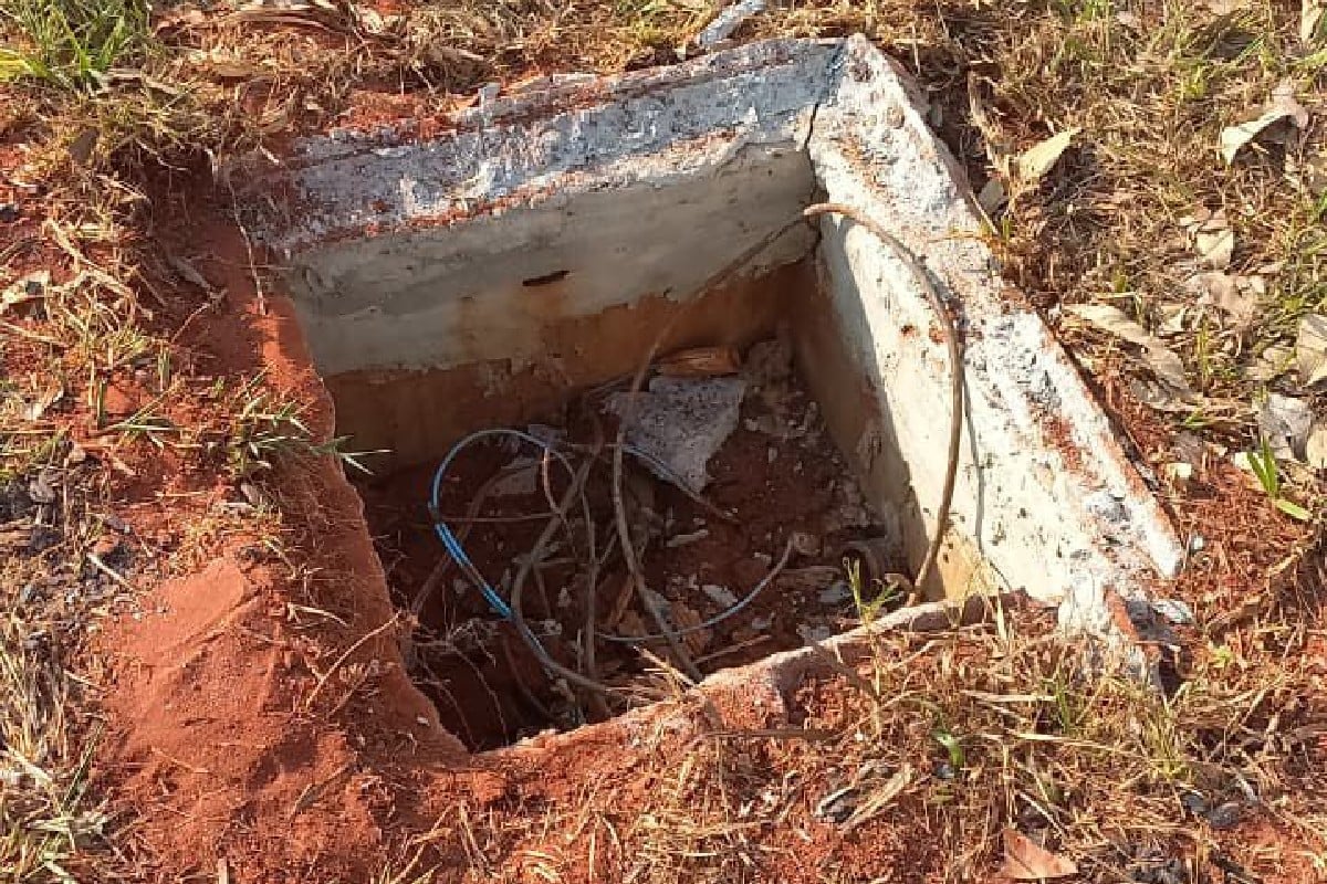 Local de onde os fios de cobre foram retirados na praça do Setor Parque Trindade, em Aparecida de Goiânia (Foto: Divulgação/GCM Aparecida)
