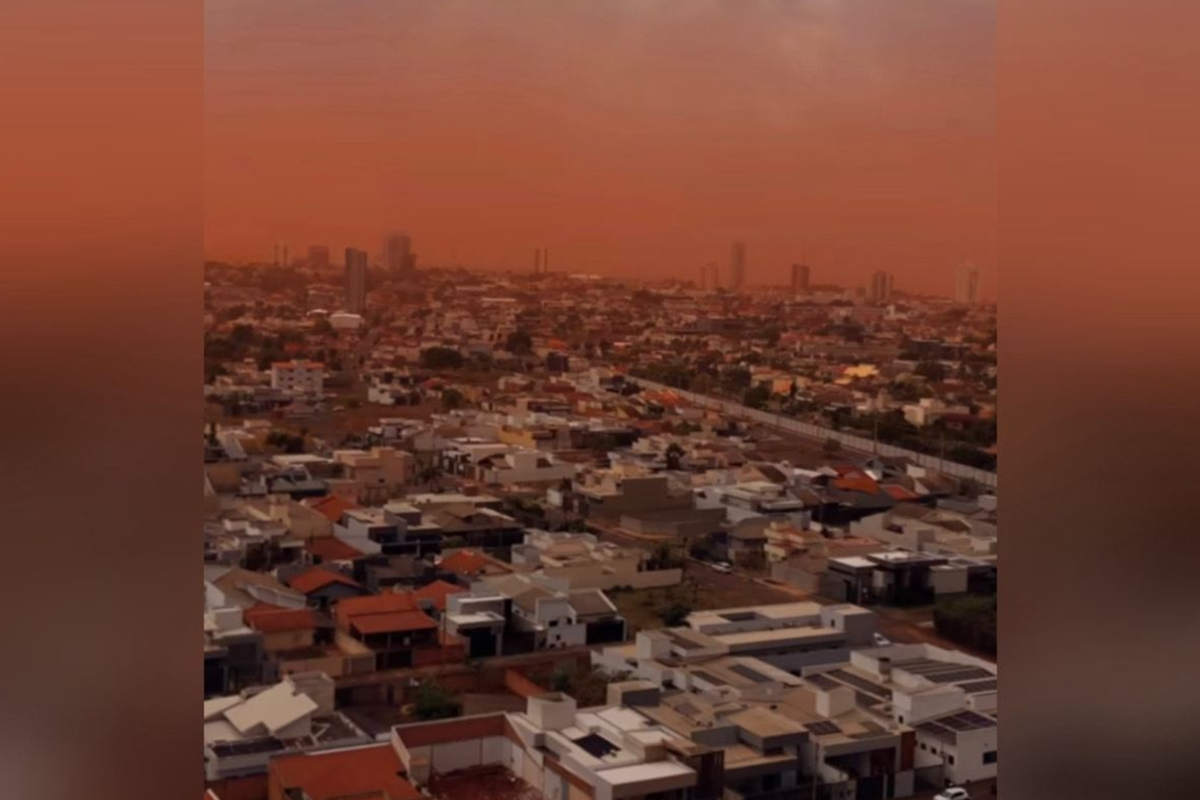 Uma nuvem de poeira chamou a atenção em Jataí, no Sudoeste de Goiás, na tarde deste sábado (18), deixando o céu da cidade com uma tonalidade alaranjada. O fenômeno foi registrado por um drone. O vídeo foi publicado pelo empresário e físico Phablo de Araújo, de 29 anos, que vive no município há 10 anos e dedica-se a registrar fenômenos naturais e desenvolver equipamentos astronômicos. Segundo ele, o evento é comum em tardes quentes após chuvas rápidas.