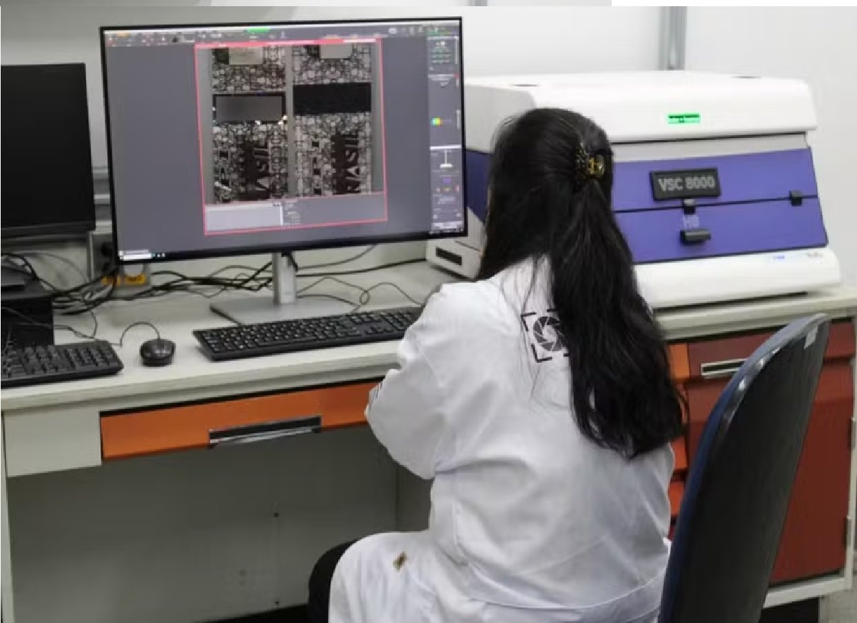 O equipamento, que amplia e revela detalhes invisíveis a olho nu, permite aos peritos comparar elementos gráficos das embalagens e identificar falsificações com precisão. Segundo Nícia Harumi Koga, diretora do Núcleo de Documentoscopia da instituição, diferenças sutis na espessura da tinta, no brilho do verniz ou no relevo da impressão denunciam a origem irregular dos produtos.