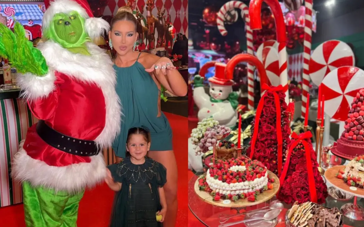 A influenciadora Virginia Fonseca promoveu, na noite desta terça-feira (23/12), uma comemoração de Natal em Goiânia. O evento foi organizado em seu espaço de festas, a Casa VF, e teve detalhes compartilhados previamente nas redes sociais. A celebração foi antecipada, já que a influenciadora não passará a data do Natal com os filhos neste ano.